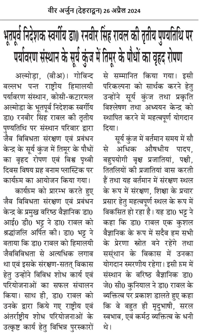 G.B. Pant National Institute of Himalayan Environment "NIHE" was established in 1988-89, during the birth centenary year of Bharat Ratna Pt. Govind Ballabh Pant, as an autonomous Institute of the Ministry of Environment, Forest & Climate Change (MoEF&CC), Govt. of India, which has been ... Read More